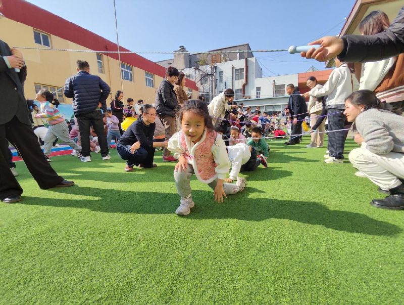 亲子游戏环节气氛热烈,“过电网”“横扫千军”等趣味项目让操场充满欢乐,家长与孩子默契配合,感受陪伴的温暖。
