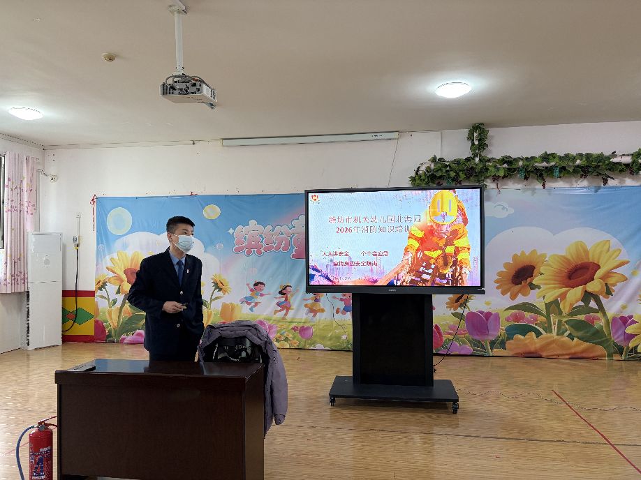 为贯彻落实春季新学期各级安全会议文件精神,3月11日,我园特邀潍坊市社安消防宣教部唐教官走进幼儿园,与老师们进行了一次“零距离”的接触,对全体教职工进行消防安全知识讲座及消防器械实操演练。