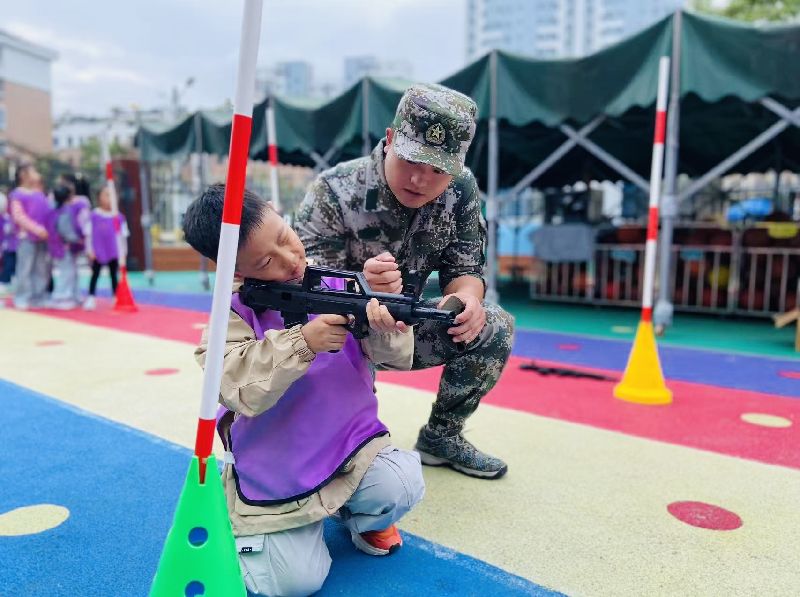 为启蒙幼儿国防意识,厚植家国情怀,我园于十月一来临之际,为幼儿精心策划了一场以“童心筑梦,强国有我”为主题的国防教育体验活动。