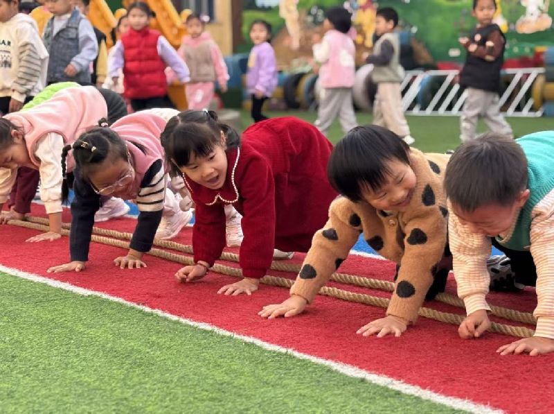 亲子游戏环节气氛热烈,“过电网”“横扫千军”等趣味项目让操场充满欢乐,家长与孩子默契配合,感受陪伴的温暖。